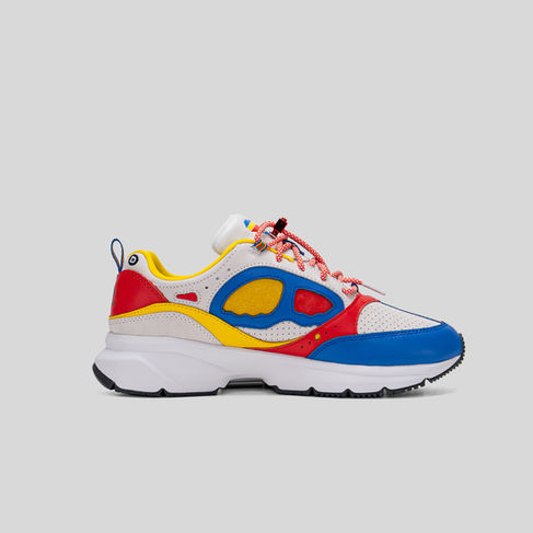The DIZYGOTIC x Dee & Ricky Project Alpha features premium pigskin suede paired with top-grain leather (solid pattern, right shoe) and vegan leather (pixelation pattern, left shoe), accented with primary brick colors. This pair stands out with its mismatched color and material design, along with asymmetrical detailing on the lateral and medial sides. The insoles include memory foam lining for comfort, while the EVA midsole provides lasting support. Strobel boards showcase mismatched DIZYGOTIC logo prints, and Vibram MegaGrip outsoles deliver enhanced stability and durability. Each pair is meticulously handcrafted in Nectar Lab rather than mass-produced on an assembly line.